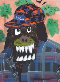 에어스프레이의 분사와 물성을 드러낸 붓질은 작품 속 괴물들의 표정을 더욱 극대화하며, 감정의 억압과 분출 사이에서 발생하는 긴장을 시각화한다. 작가에게 괴물은 억제된 감정의 표상으로 감상자의 기억과 정서를 투영하는 매개체로 기능한다. 작가는 이들이 발화하는 언어뿐 아니라, 표정과 제스처 등 비언어적 소통 방식에 주목한다. 괴물들이 걸치고 있는 옷은 작가의 취향을 적극 반영하며 특히 얼굴을 은폐하면서도 존재감을 강화하는 모자는 현대문화의 매커니즘을 응축하고 있다.