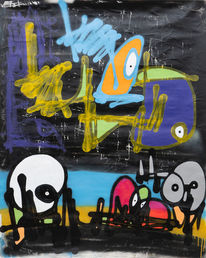 Underneath the veneer of childlike doodles lie an art form and an artist's vision who finds beauty in imperfection and embraces it with explosive energy and color.