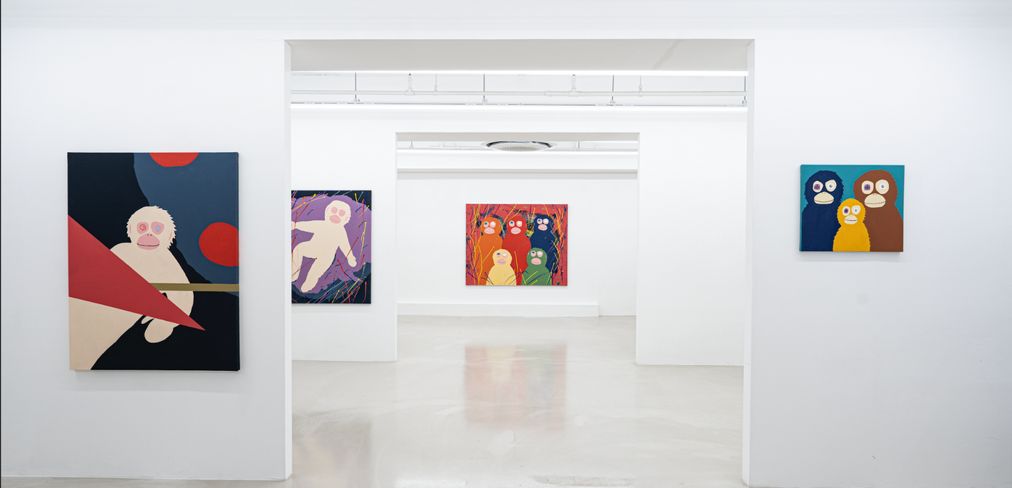 완벽한 이해는 스스로를 향해서도 도달하기 어려운 지점이다. 우리는 얼핏 이해의 느낌이라도 경험하기 위해선 서로의 입장이 되어보아야 한다. 관계 개선을 위한 상담 치료에서도 ‘거울 치료’라는 말이 있듯이 서로에게 발견되는 행동 패턴과 말 습관을 그대로 따라 하다 보면, 자기 자신도 몰랐던 자신의 모습을 보면서 상대방이 보는 나를 깨닫고, 상대방의 입장을 조금이나마 이해할 수 있게 된다. 홍태양 작가도 그렇게 이옴테이오를 탄생시키지 않았을까? 수많은 ‘너’를 경험해 보며 ‘나’를 찾아가고 결국 너와 나를 모두 아우르는 우리를 이해하기 위한 이옴테이오의 탐험과 모험을 우리는 작품을 통해서 엿볼 수 있다. 이옴테이오는 Toi et Moi(너와 나)를 거꾸로 읽은 단어로 홍태양 작가의 작품 전반에서 등장하는 유인원 캐릭터이다. 이옴테이오의 한쪽 눈엔 세상을 받아들이기 위한 문이 존재한다. 그리고 자신의 모습 위에 다양한 사회의 흔적을 입고 자신의 모습을 남기며 기록한다. 또한 역사의 한 지평 속으로 과감히 뛰어들어 ‘너’를 이해하려 한다.