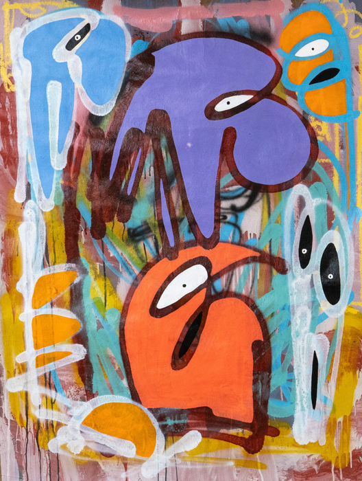 Underneath the veneer of childlike doodles lie an art form and an artist's vision who finds beauty in imperfection and embraces it with explosive energy and color.